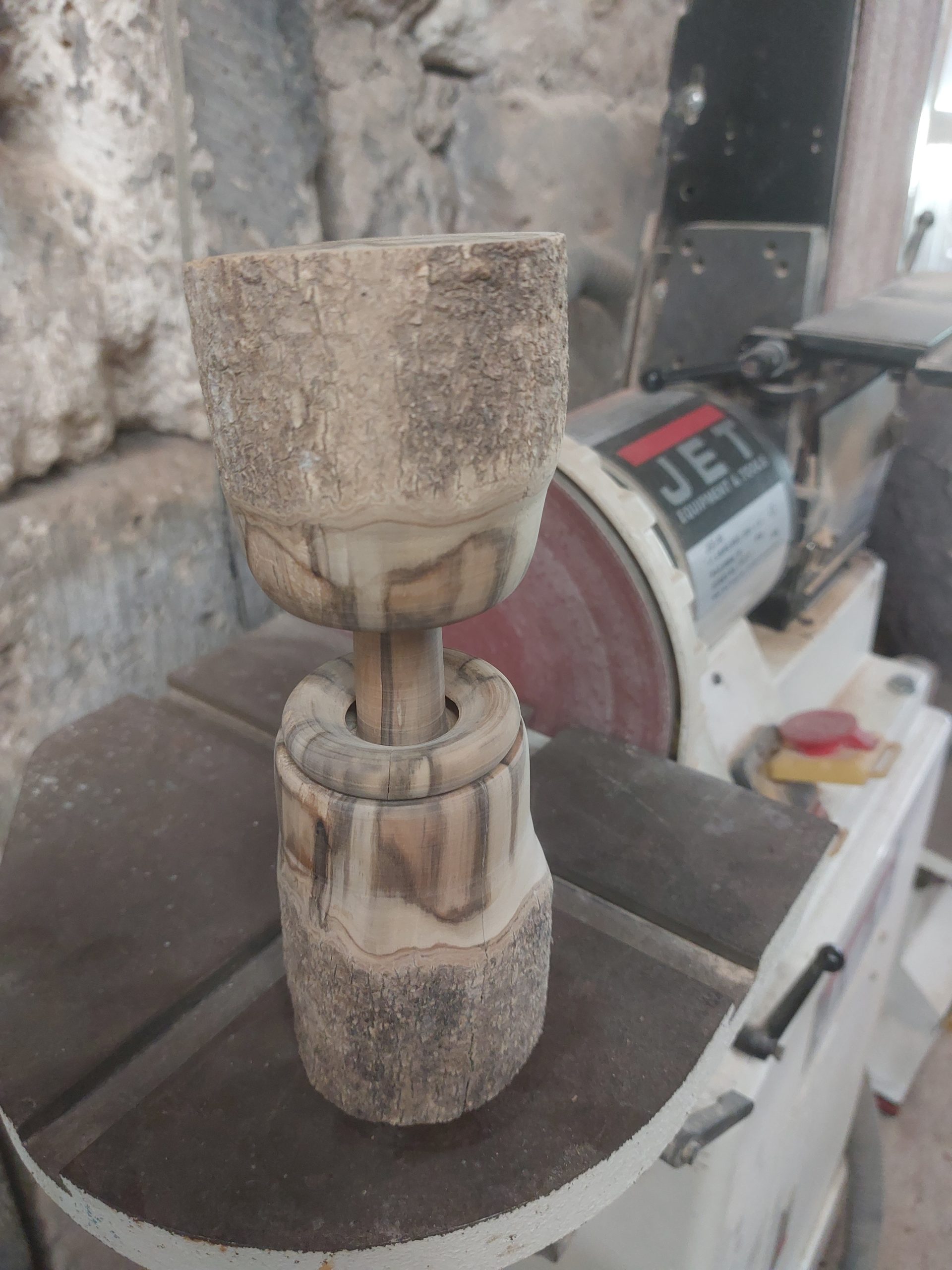 Et puis, un gros rangement dans l’atelier me remémore une série de blocs de bois qui, une fois tournés, feraient de jolis socles.